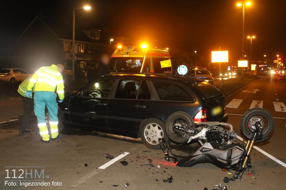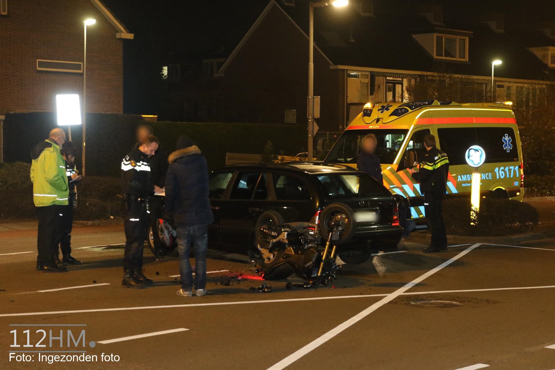 De bestuurder van de motor is bij de aanrijding lelijk terecht gekomen en is door het ter plaatse gekomen ambulancepersoneel onderzocht op verwondingen. Wonder boven wonder raakte de motorrijder bij de aanrijding niet ernstig gewond. De motor en de auto waren beide wel beschadigd, een berger zal ter plaatse komen om de voertuigen te bergen.