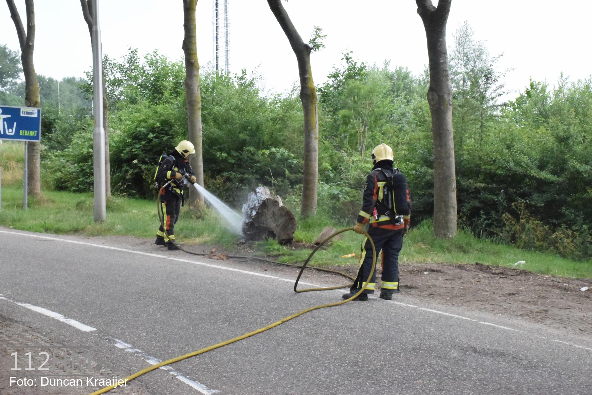 GOUDA – Zaterdagmiddag 9 juni rond 12.30 uur zijn boomstammen in brand gestoken. Dit gebeurde op de parkeerplaats van Shell De Andel langs de A12 bij Gouda.