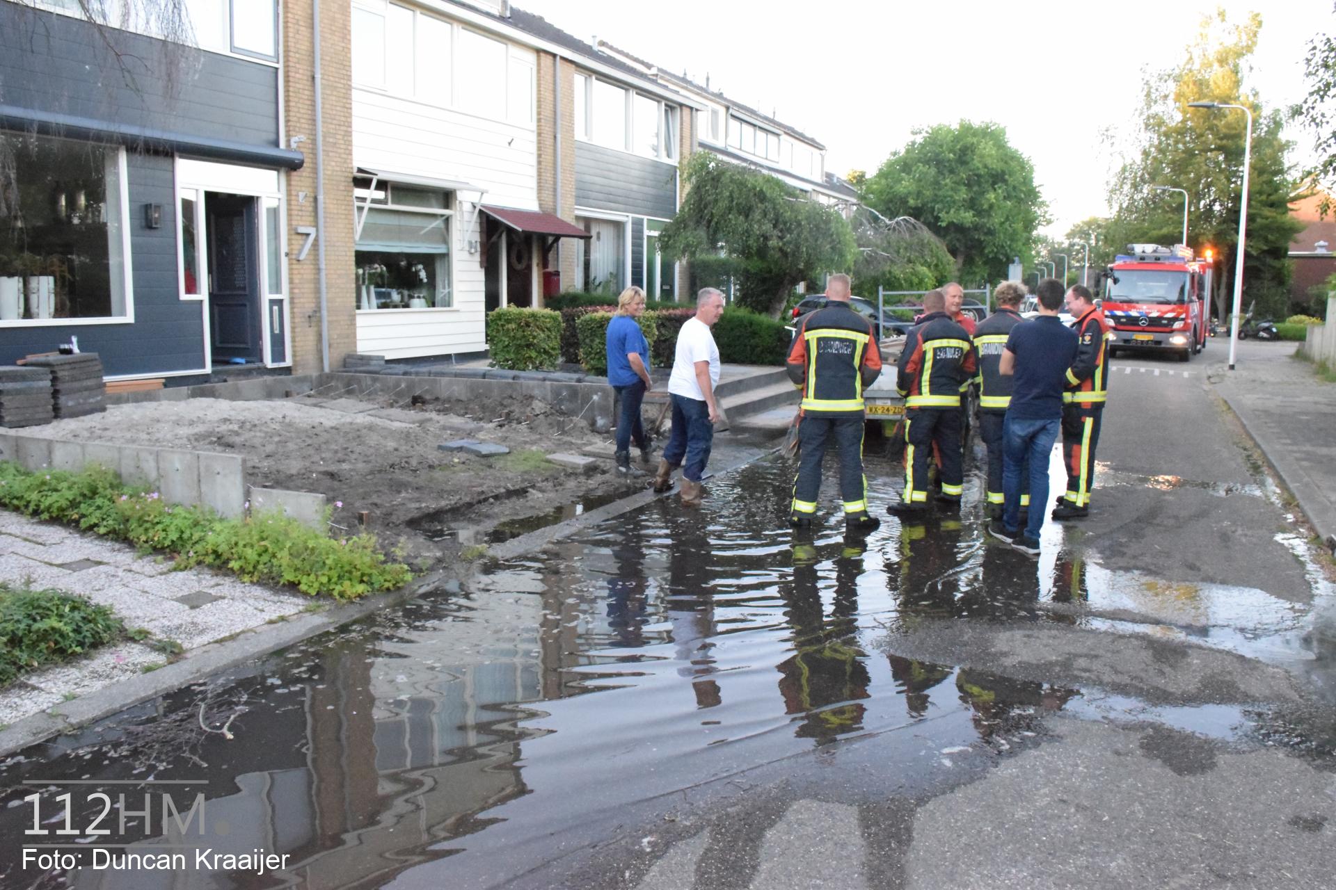 De brandweer heeft een gespecialiseerd bedrijf ingeschakeld, om het lek in de waterleiding te herstellen. De straat kwam blank te staan door de lekkage.