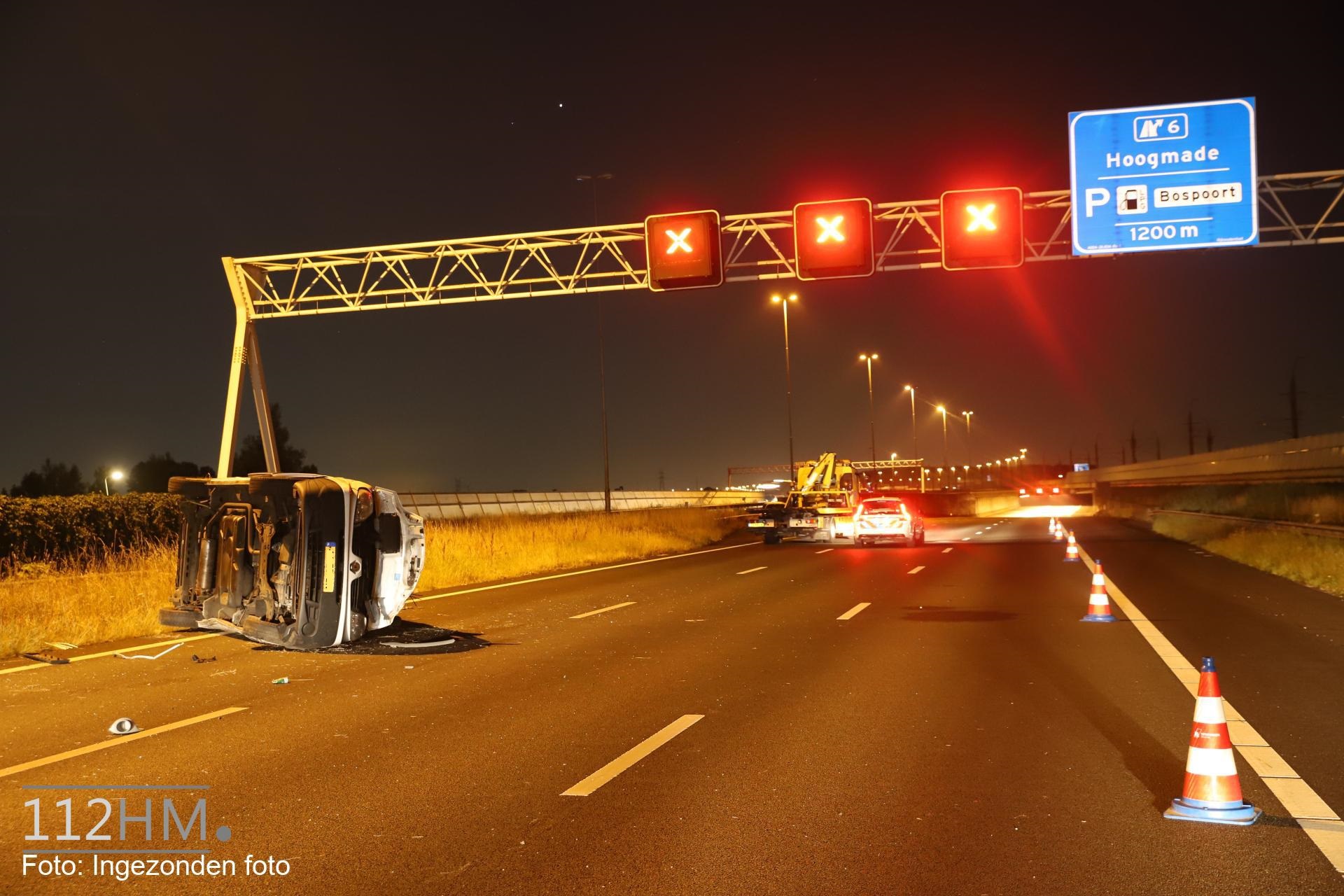 Een automobilist is bij dit ongeval tenminste één keer over de kop geslagen. Het slachtoffer is hierbij ernstig gewond geraakt waardoor de traumahelikopter is opgeroepen en op de snelweg geland is.