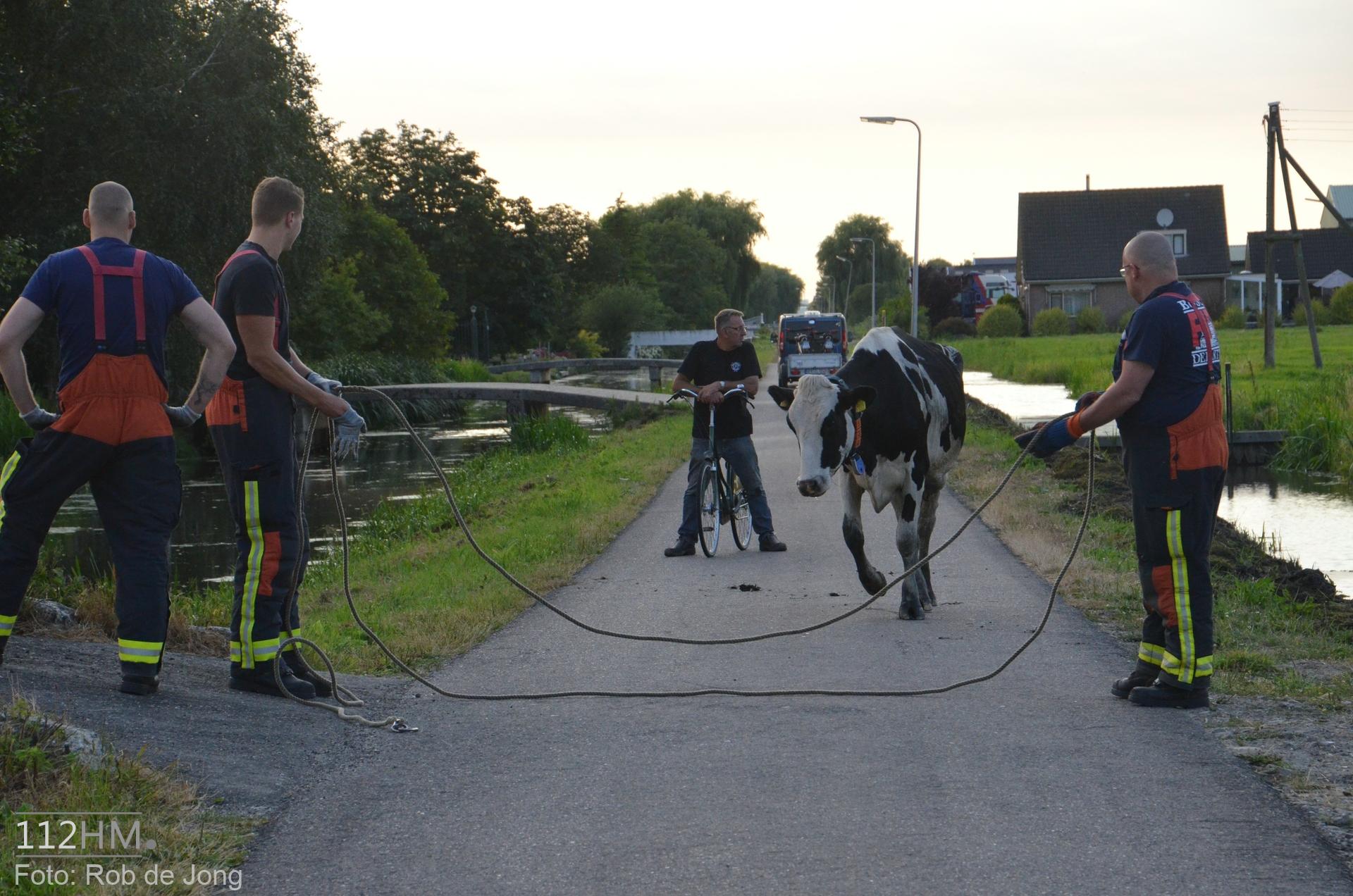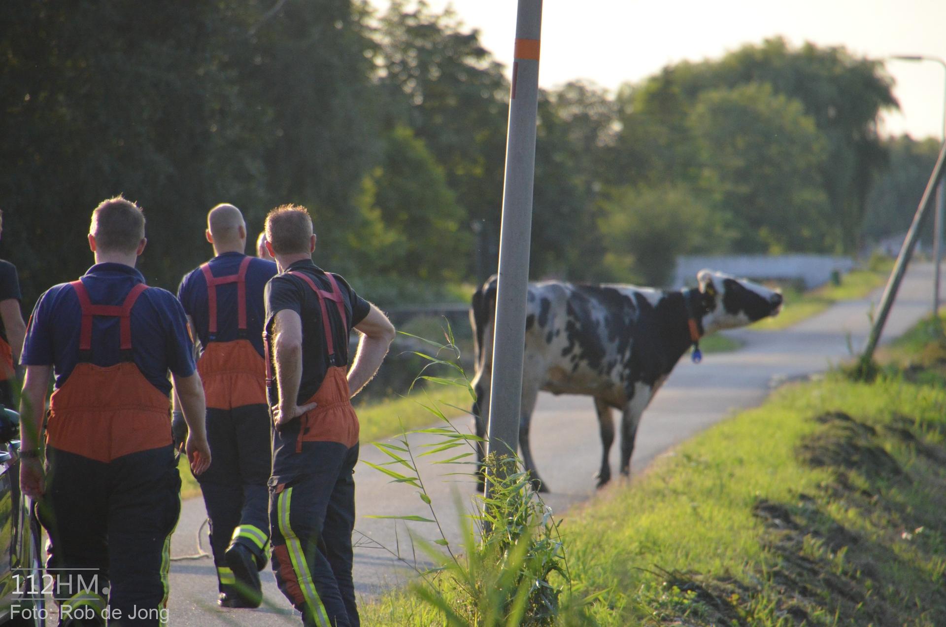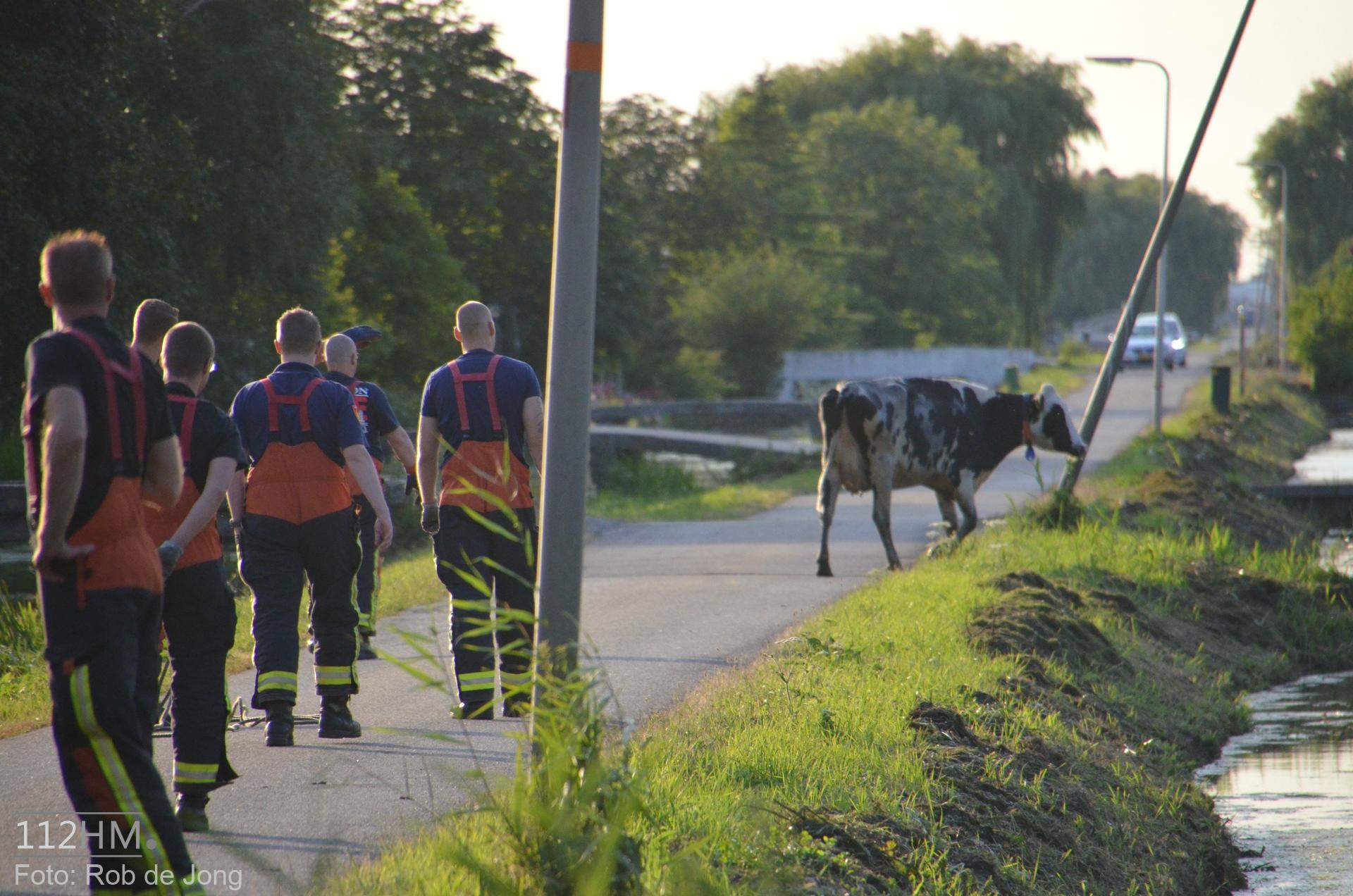 Een bekende van de eigenaar kon gecontacteerd worden, waarop hij kwam om de koe enigszins op dezelfde plek te houden. Dit was nadat zij al de benen had genomen. Nadat de eigenaar zelf ook was aangekomen, besloot hij ervoor om de koe weer via dezelfde weg terug te laten keren naar het weiland: via de sloot. De koe werd de sloot ingejaagd en vervolgens door de boer, m.b.v. een trekker, in de wei weer op het droge getrokken. Hierop kon de brandweer terug naar de kazerne. Zover bekend heeft het dier niks aan het avontuur overgehouden.