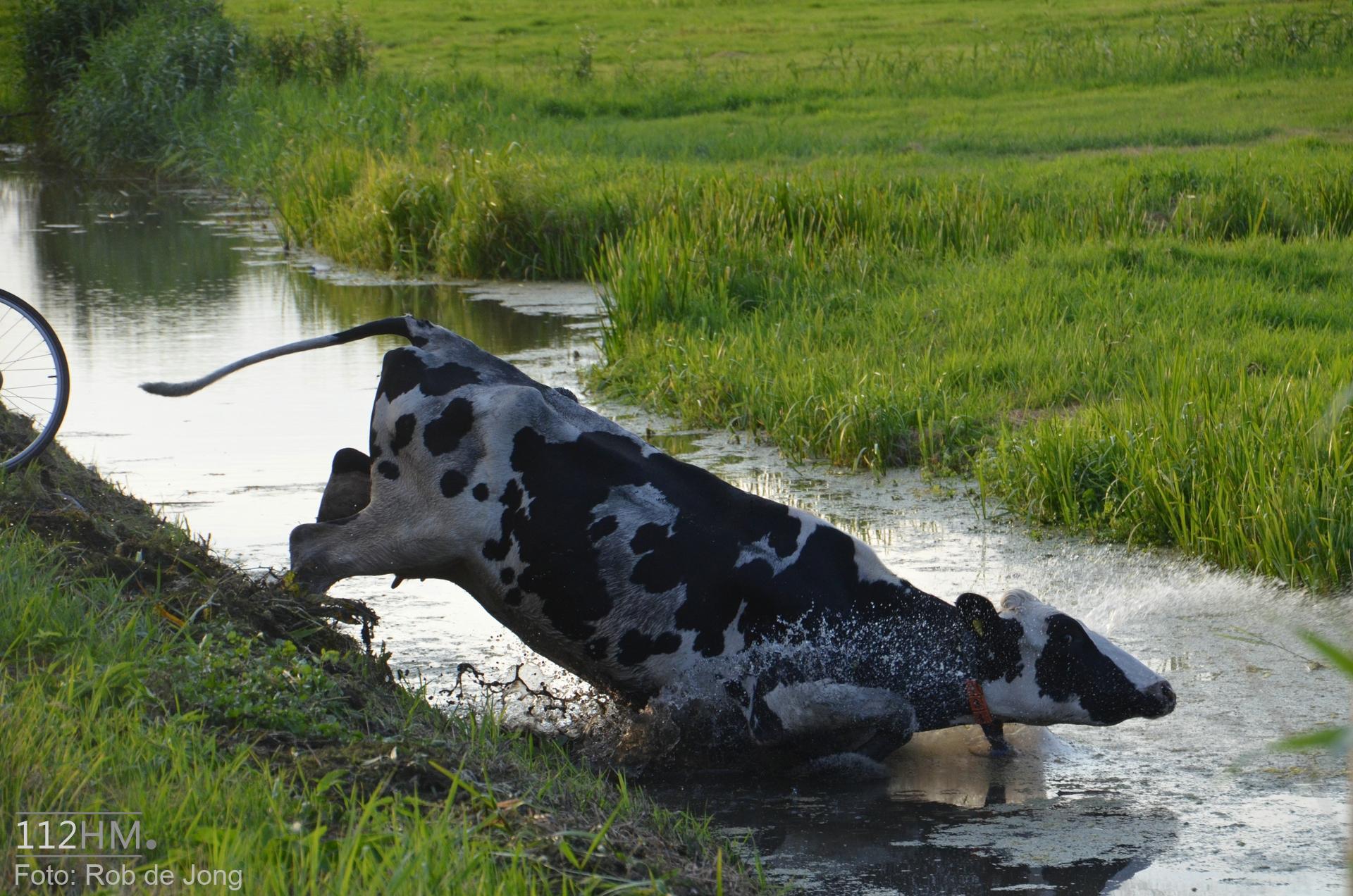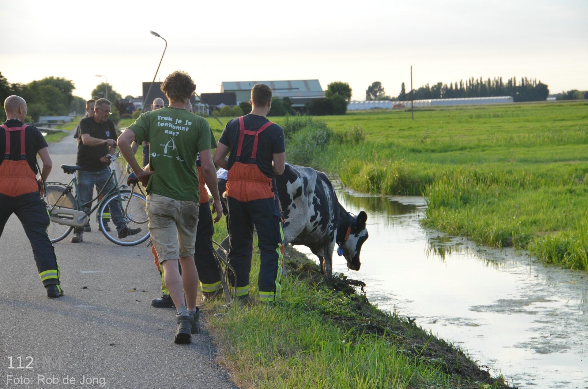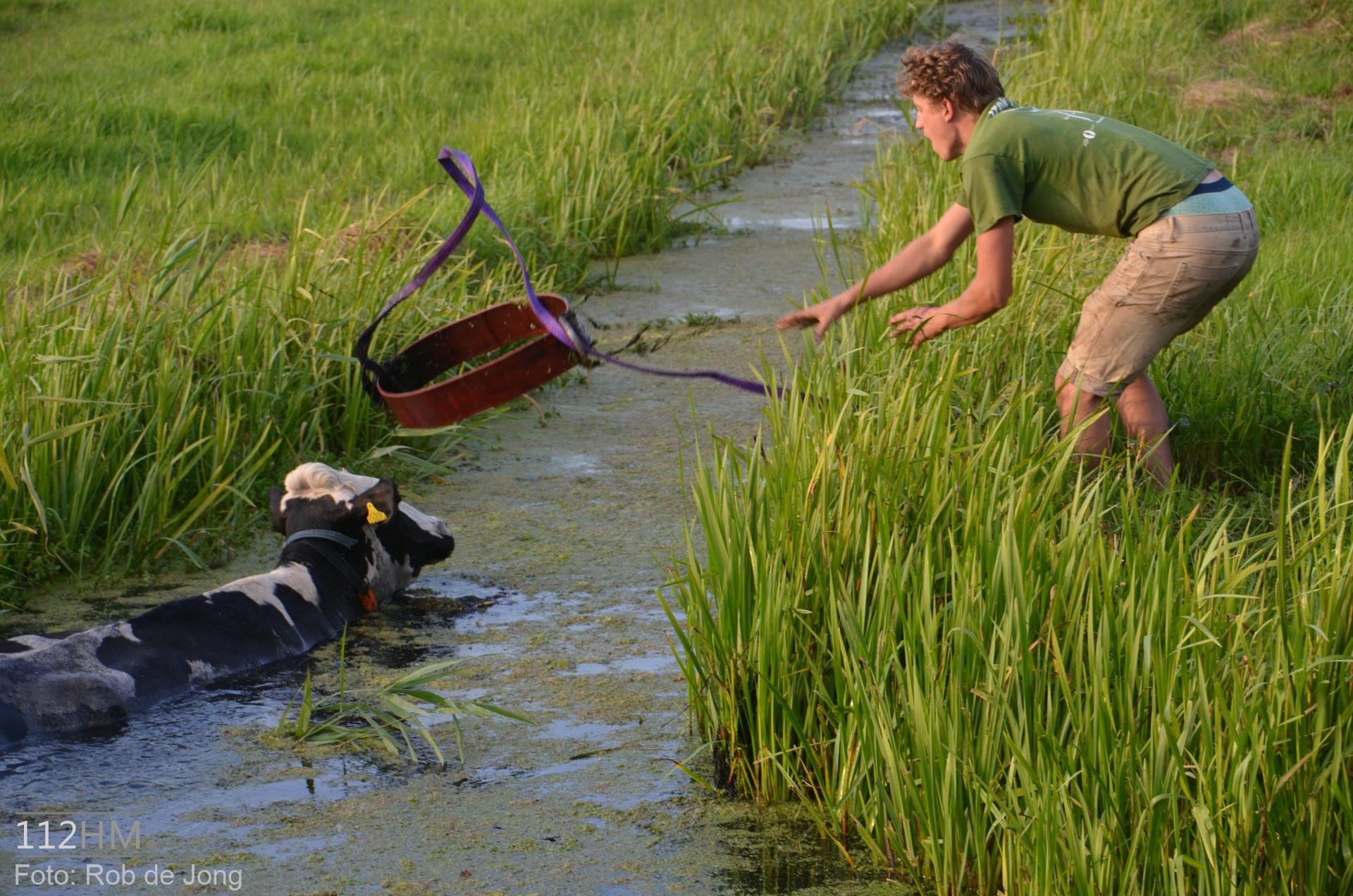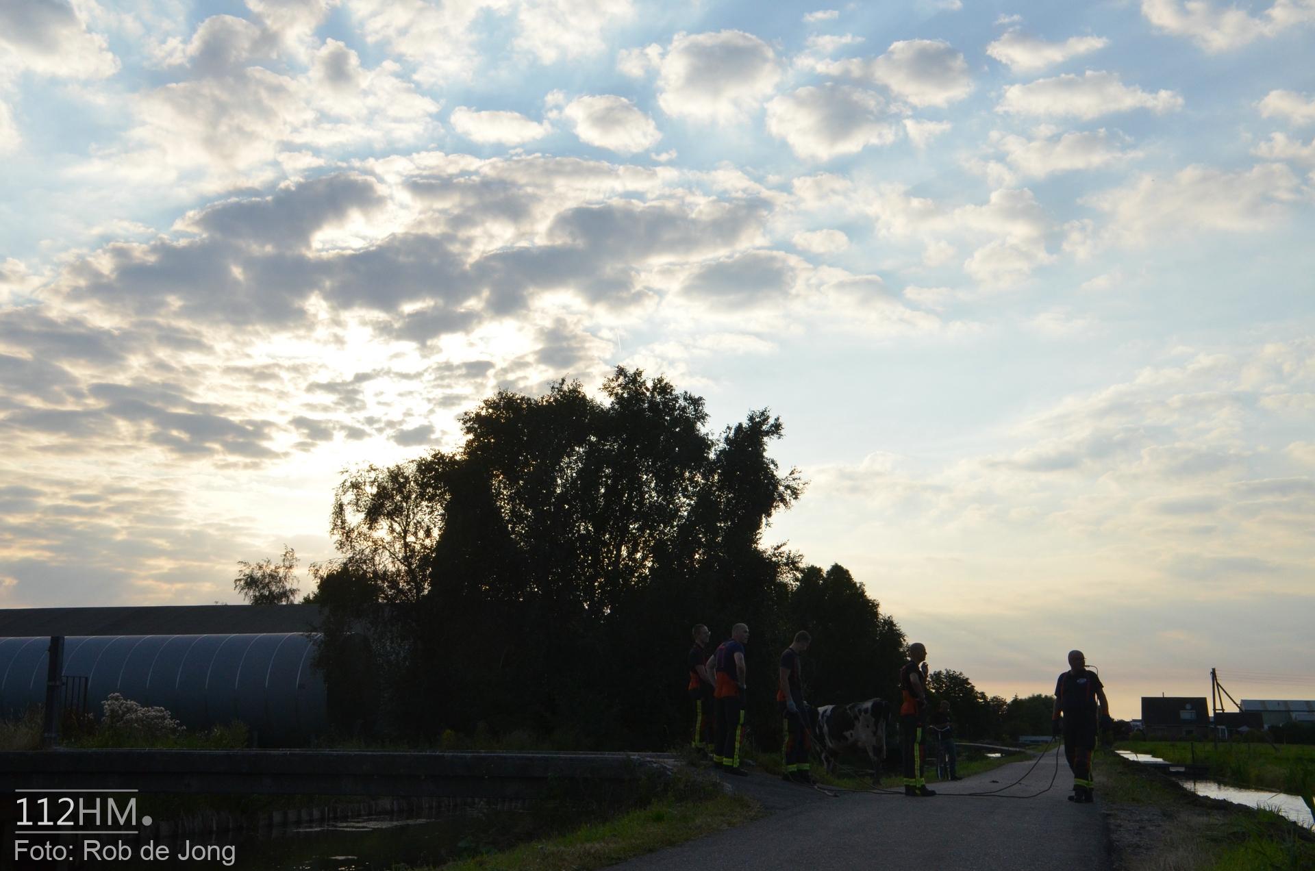 Een bekende van de eigenaar kon gecontacteerd worden, waarop hij kwam om de koe enigszins op dezelfde plek te houden. Dit was nadat zij al de benen had genomen. Nadat de eigenaar zelf ook was aangekomen, besloot hij ervoor om de koe weer via dezelfde weg terug te laten keren naar het weiland: via de sloot. De koe werd de sloot ingejaagd en vervolgens door de boer, m.b.v. een trekker, in de wei weer op het droge getrokken. Hierop kon de brandweer terug naar de kazerne. Zover bekend heeft het dier niks aan het avontuur overgehouden.