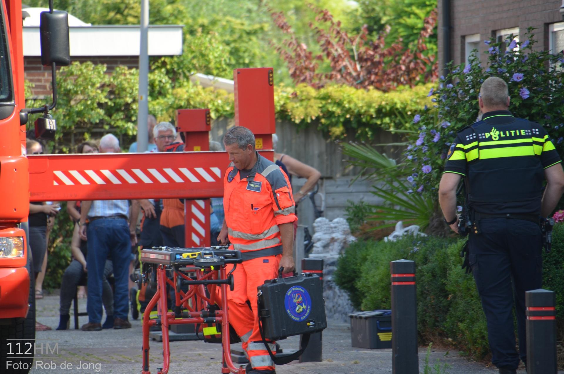 Het slachtoffer is enige tijd behandeld waarna deze uit eindelijk met de Zoetermeerse hoogwerker naar beneden is gebracht. Vrij snel daarna vertrok de ambulance met de MMT arts naar het ziekenhuis. Ook een tweede persoon had medische hulp nodig, welke is verleend door de verpleegkundige van het MMT, in afwachting van een nieuwe ambulance. Toen deze was gearriveerd, kon de verpleegkundige terug naar de heli, waarna deze kon vertrekken.