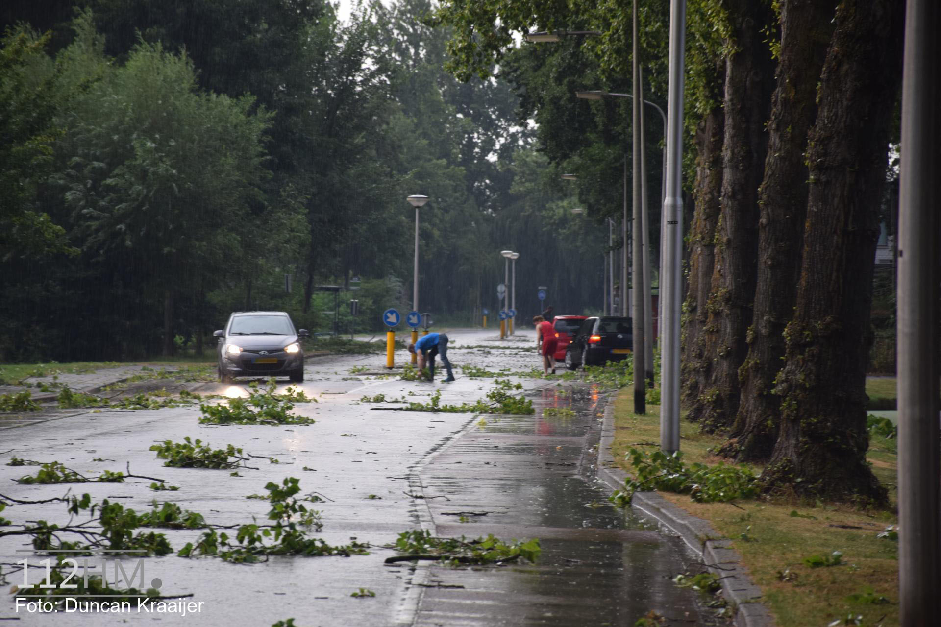 Nog voor de brandweer er was waren buurtbewoners en langs rijdende automobilisten al bezig om de grootste takken van de weg te halen omdat er niet normaal te rijden was. Of de brandweer nog wat gedaan heeft is niet bekend.
