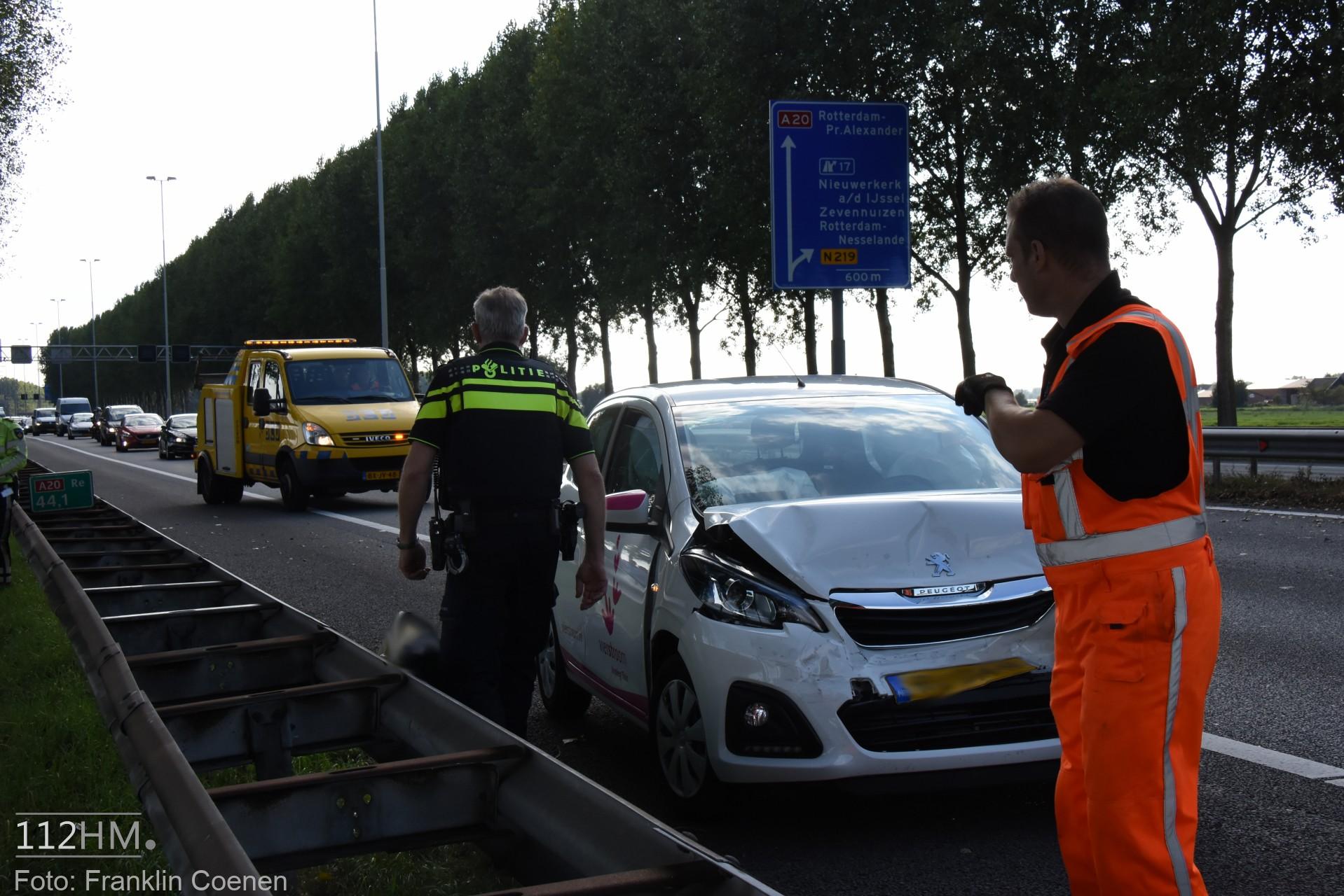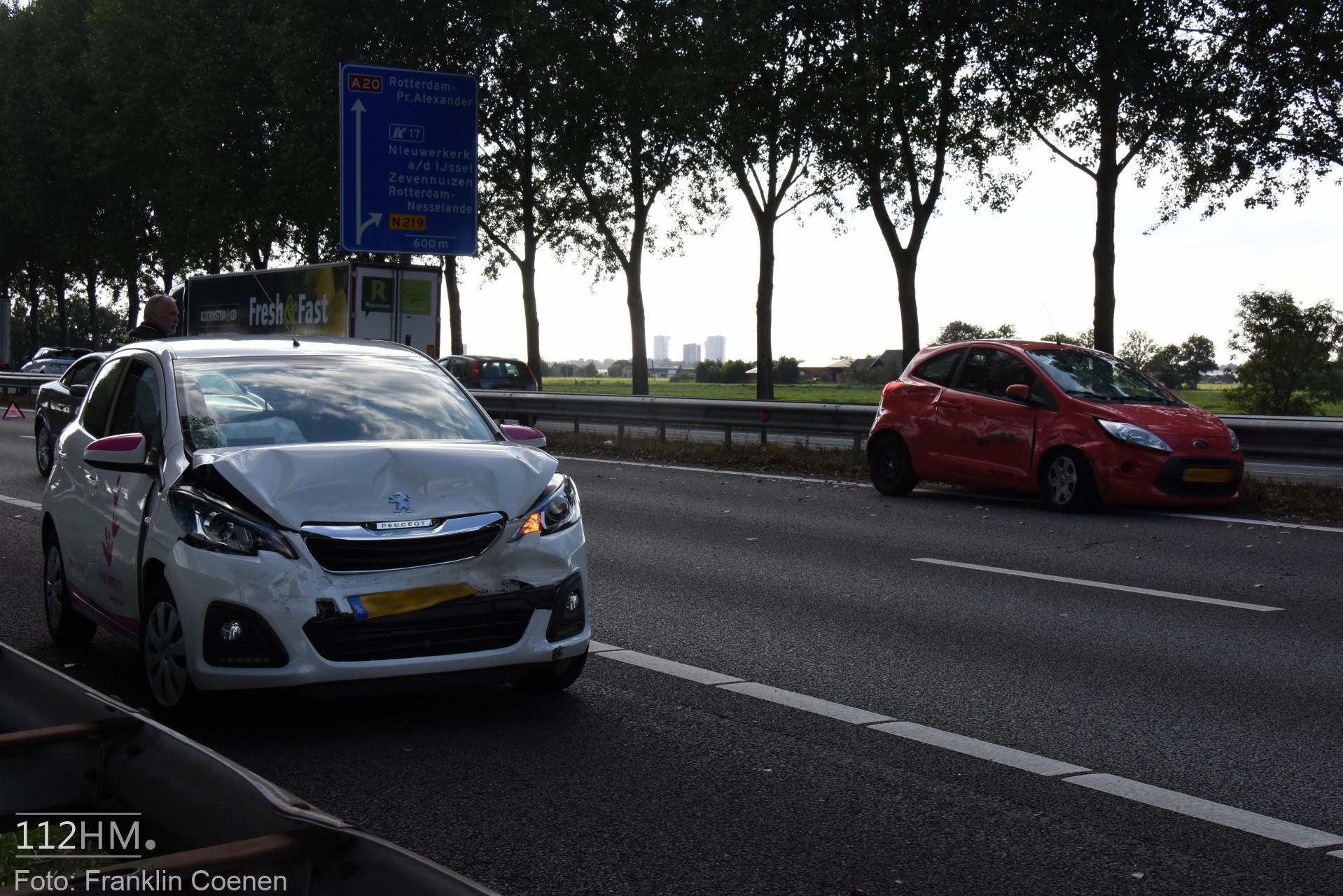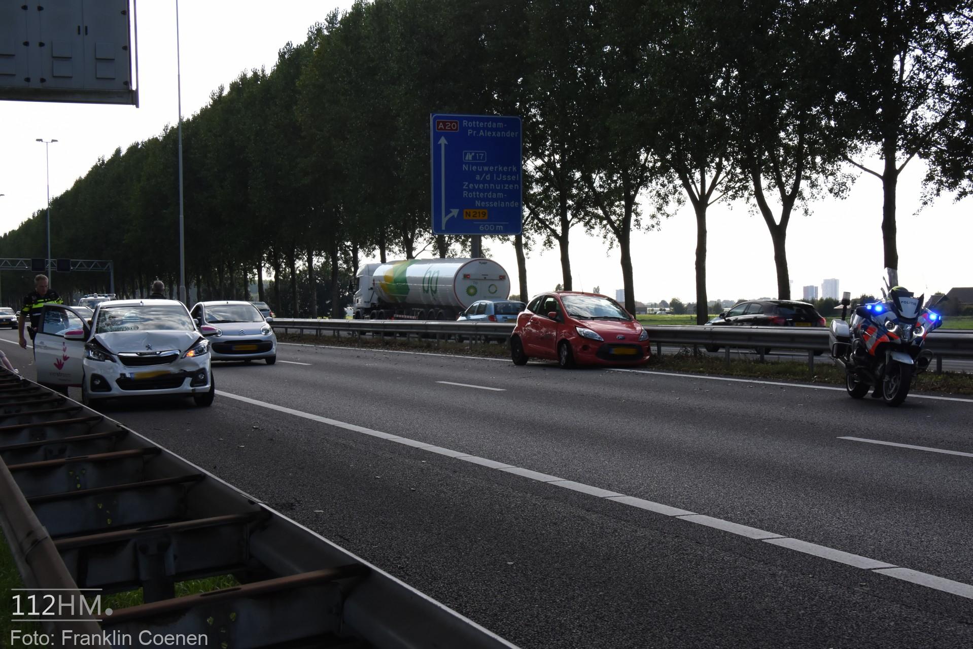 MOORDRECHT – Deze middag werden de hulpdiensten gealarmeerd voor een ongeval met letsel op de A20 bij Moordrecht in de richting van Gouda. Ter plaatse bleek er een aanrijding te hebben plaatsgevonden tussen drie voertuigen.