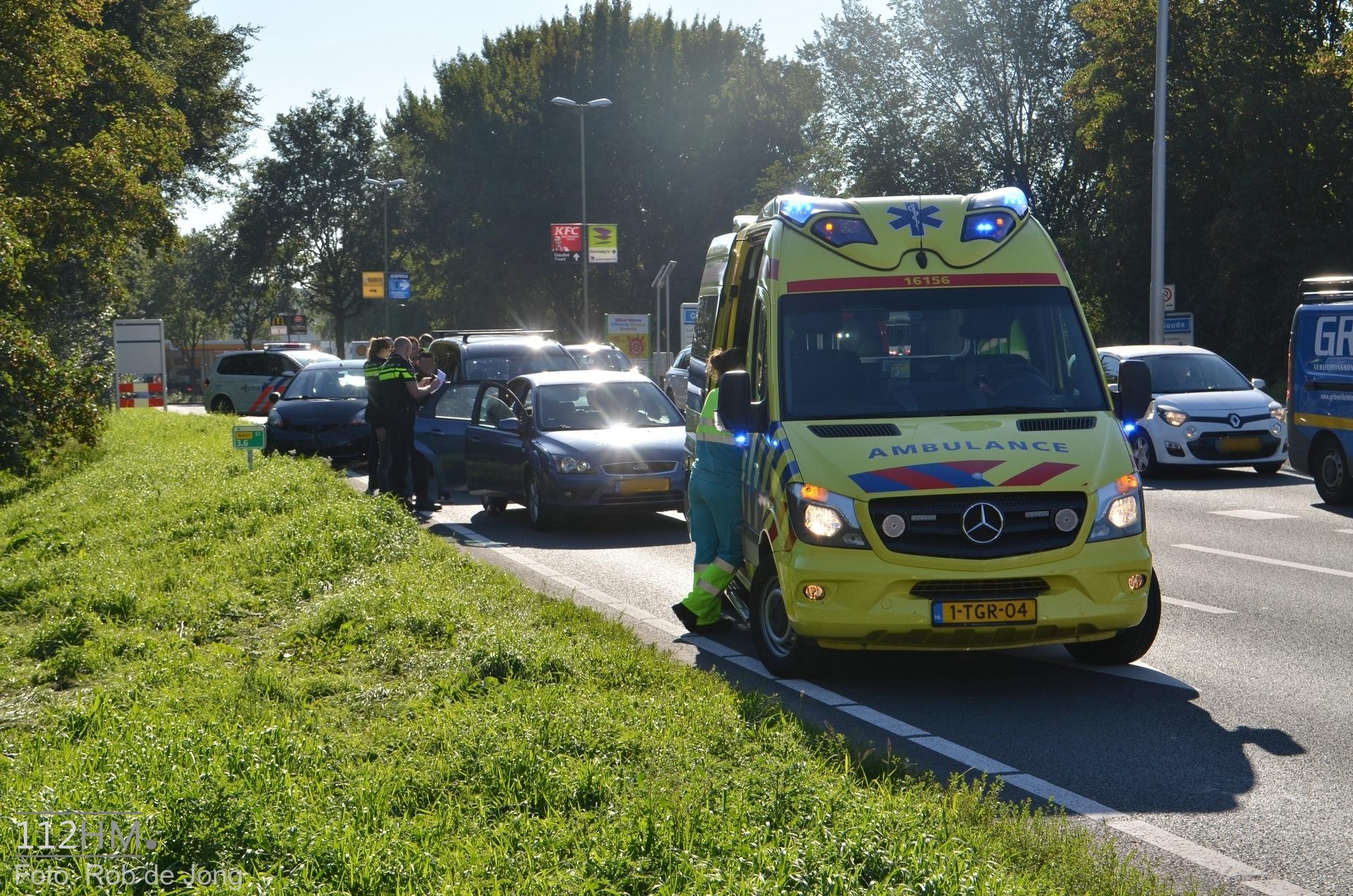 GOUDA – Tegen de avondspits van donderdag is er een ongeval gebeurd op de Goudse Poort (N451) in Gouda. Vlak voor de verkeerslichten voor de af- en toerit van de A12 hadden drie voertuigen een kop staart aanrijding.