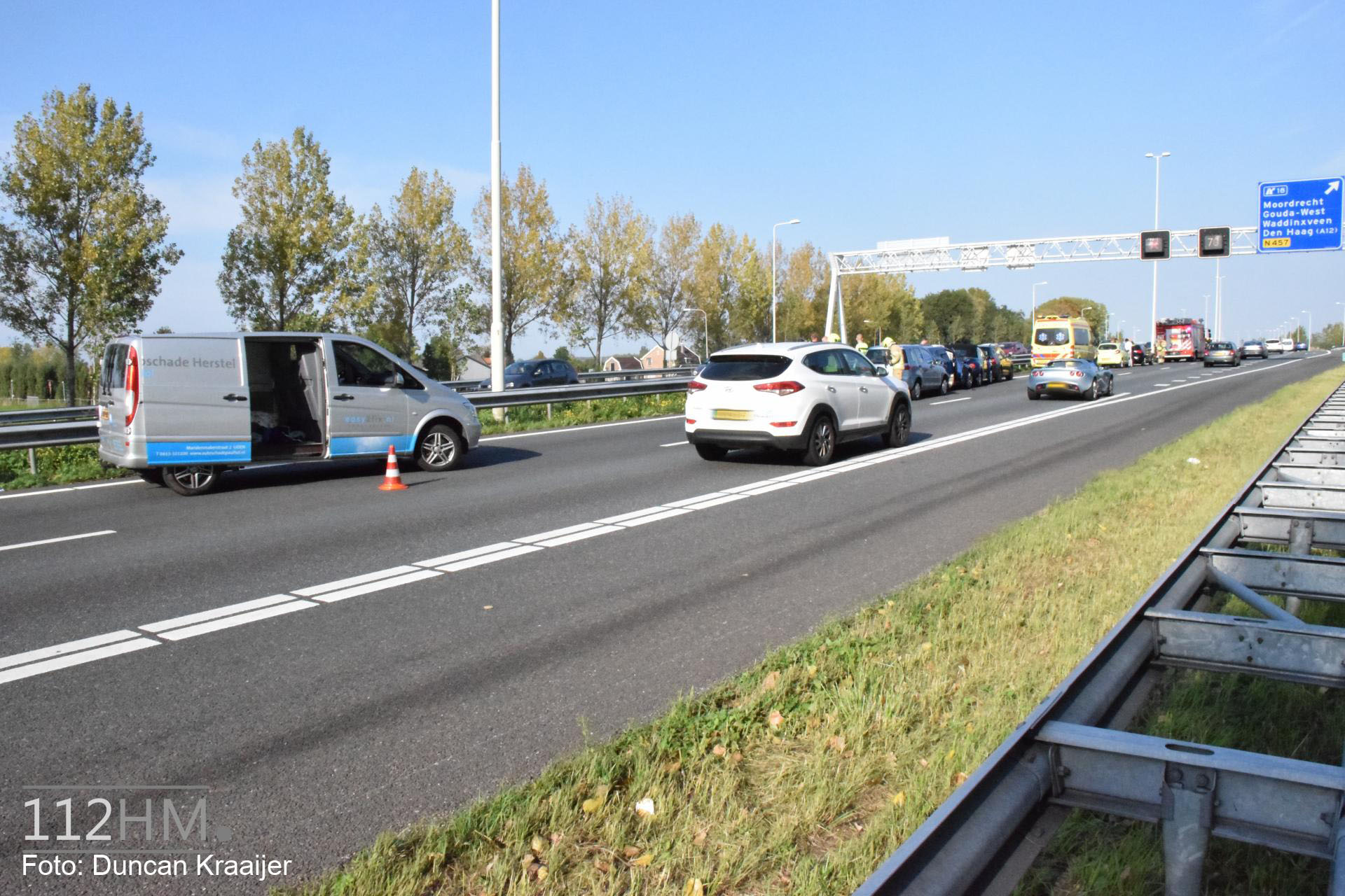 Gewonde en file na kettingbotsing met 6 voertuigen Rijksweg A20 Moordrecht