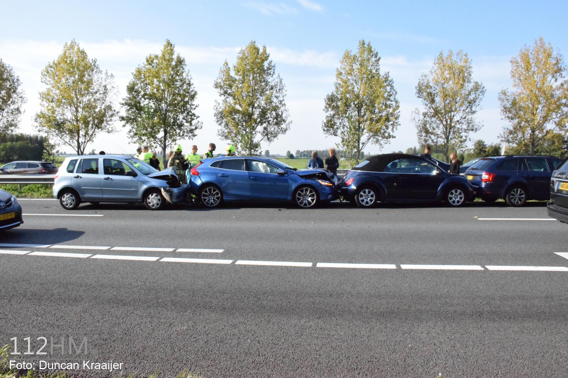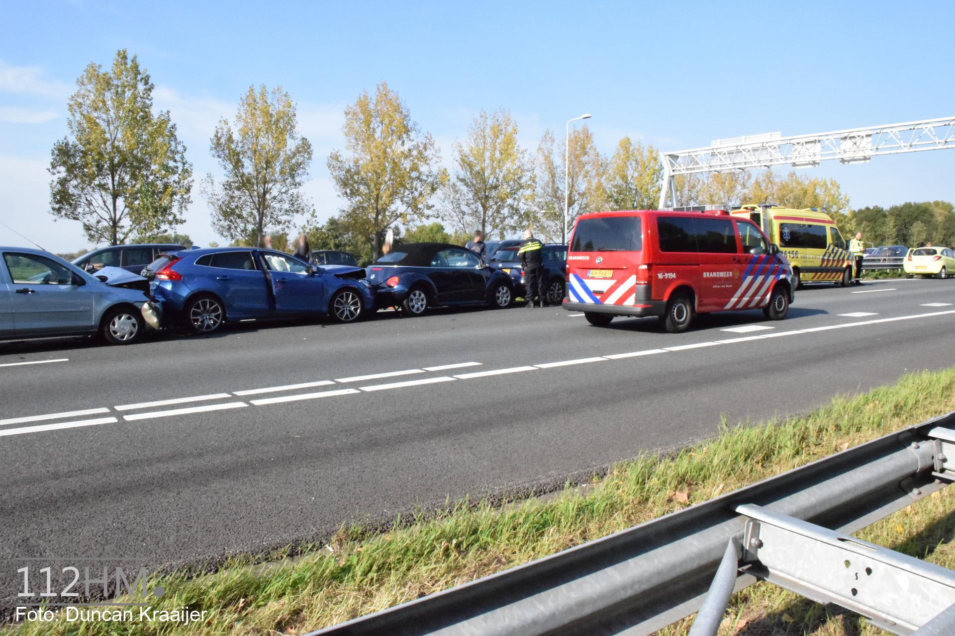 MOORDRECHT – Zaterdagmiddag 6 oktober rond 15.26 uur zijn twee personen gewond geraakt bij een kettingbotsing tussen meerdere voertuigen op de Rijksweg A20 bij Moordrecht.