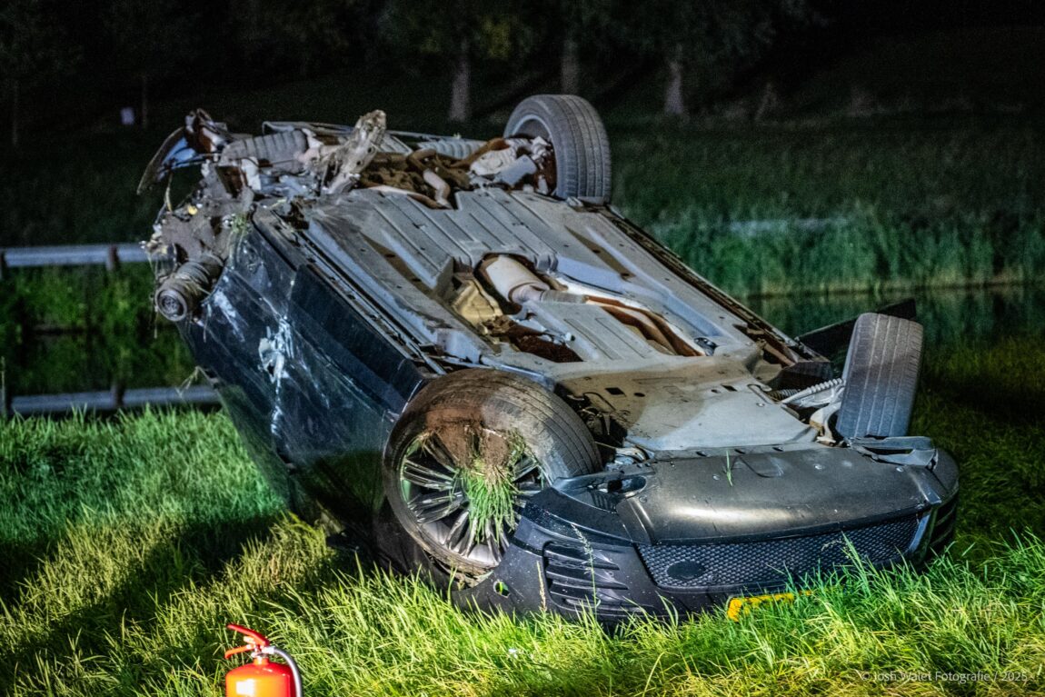 Auto slaat na ongeval meerdere keren over de kop op de N207 bij Aarlanderveen