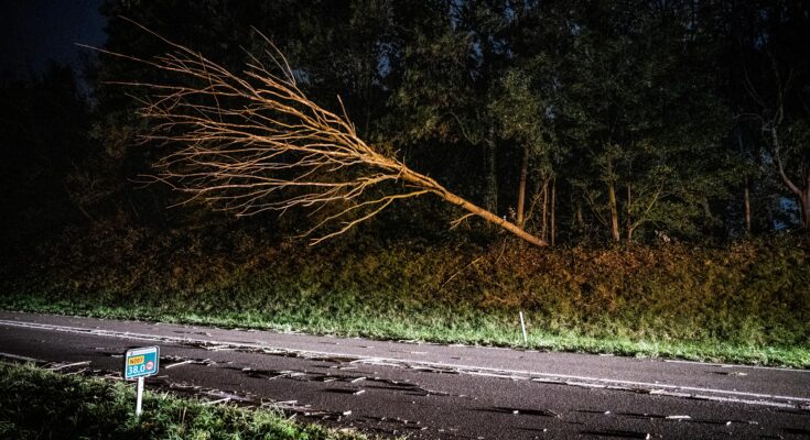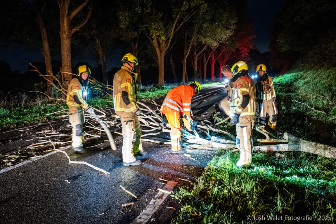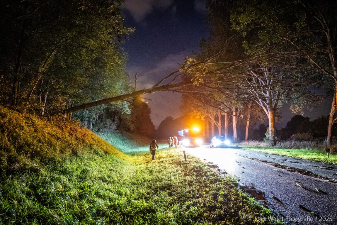 Zaterdagavond werd de brandweer opgeroepen voor een stormschade op de Zegerbaan/N207. Ter plaatse was een boom omgewaaid en hing deze gevaarlijk over de weg.