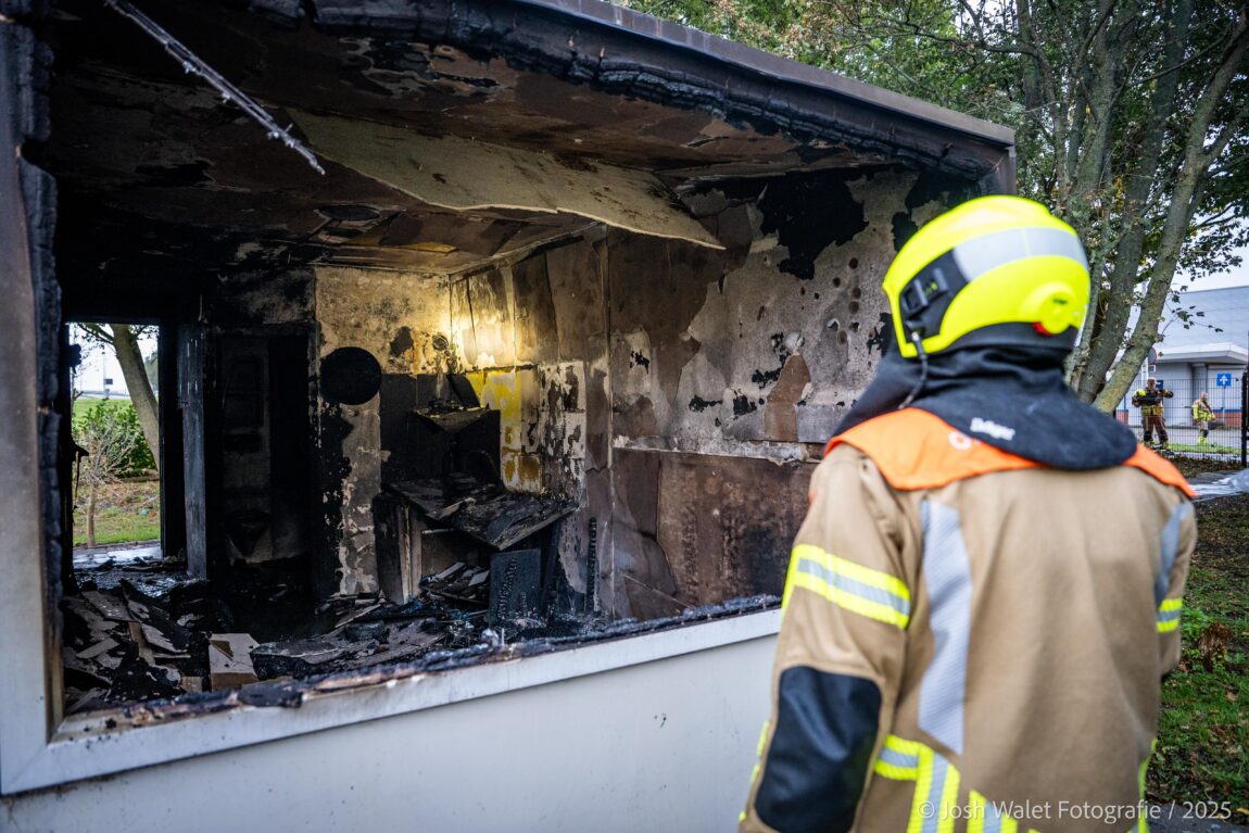 Zondagochtend is een containerwoning aan de Vennootsweg in Alphen aan den Rijn volledig uitgebrand.