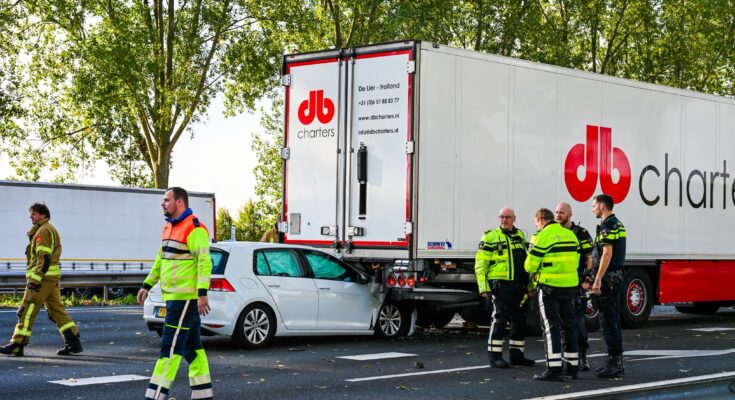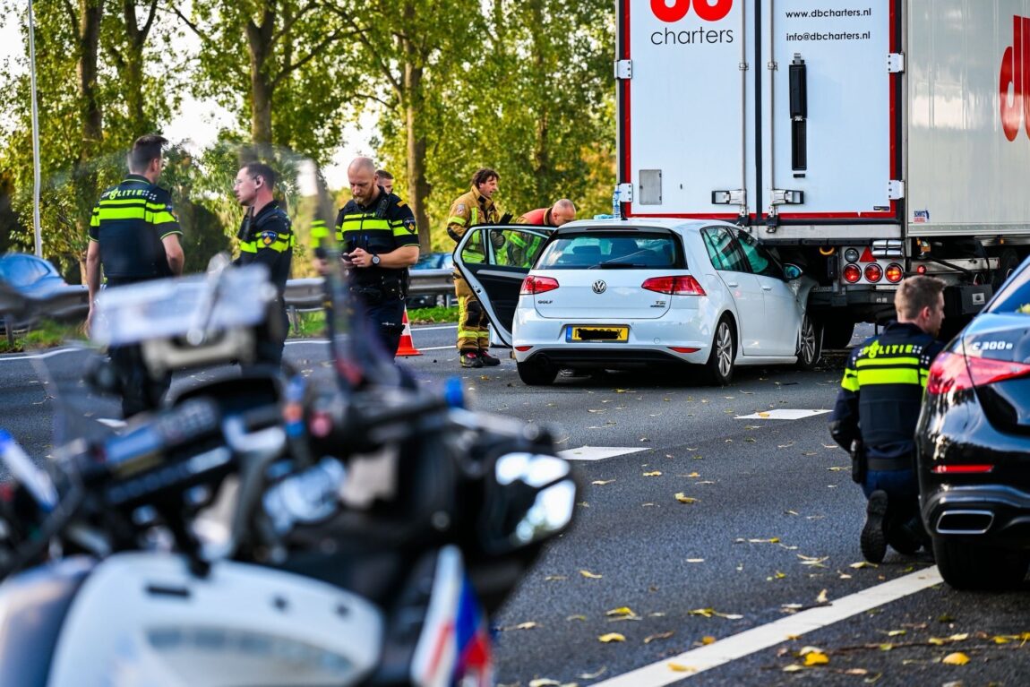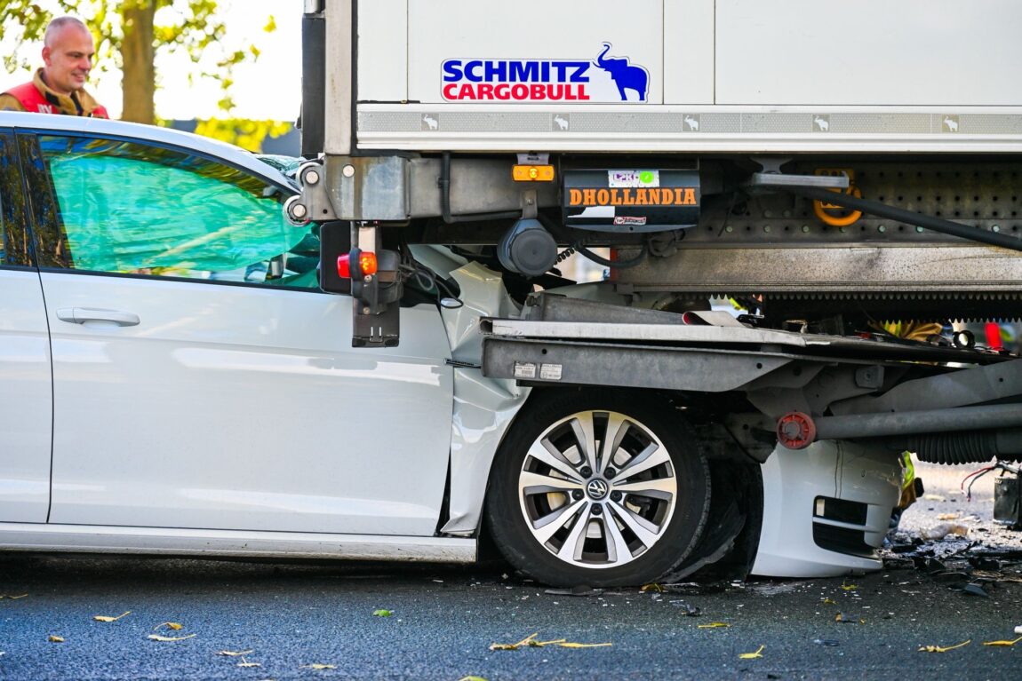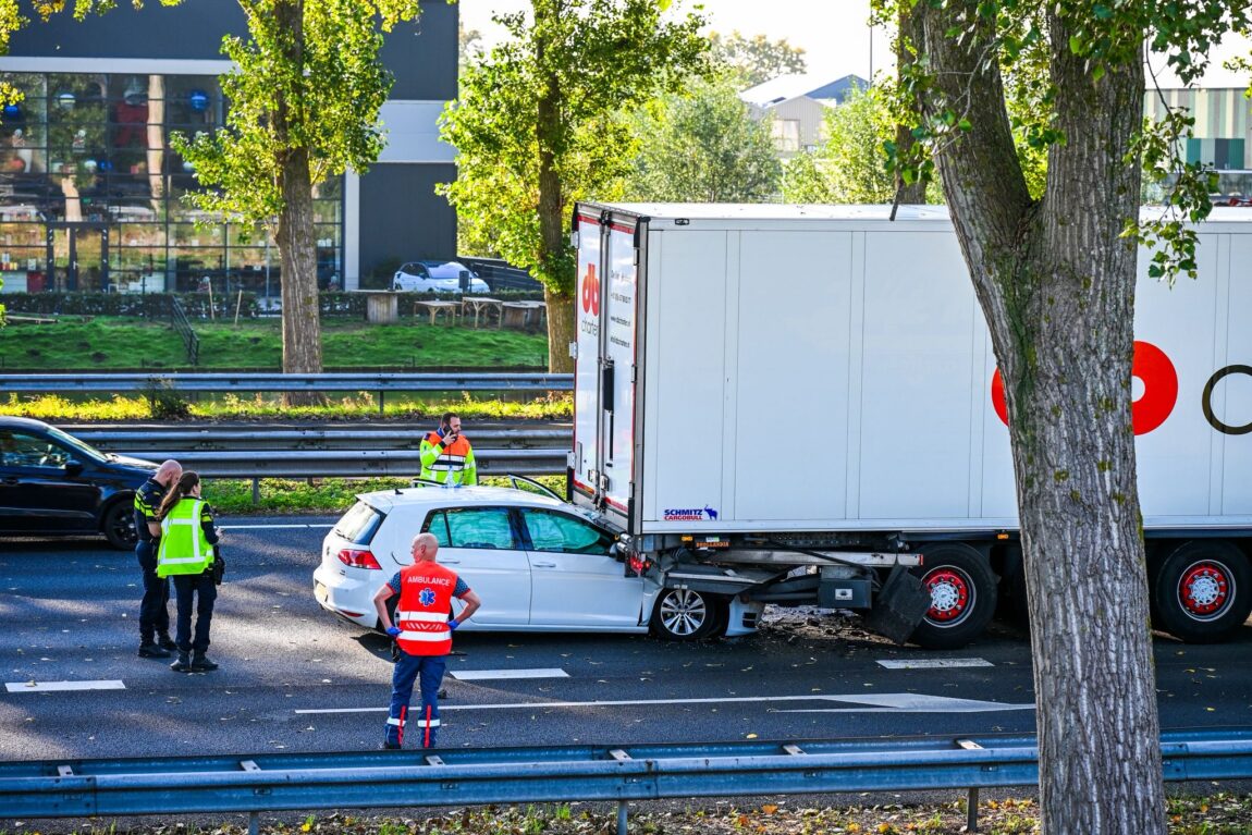 Nieuwerkerk A/D IJssel- Op de A20 ter hoogte van Nieuwerkerk is heeft er een flink ongeval plaatsgevonden. Hierbij is een auto onder de trailer van een vrachtwagen gekomen. De bestuurder van de auto raakte hierbij gewond.
