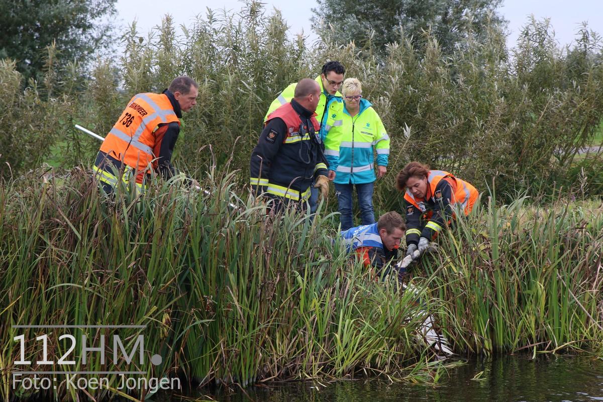 Auto belandt op zijn kop te water langs de A4 bij Leiderdorp
